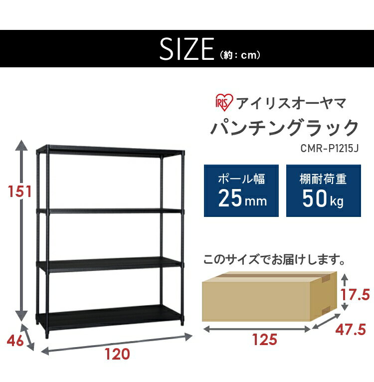 スチールラック 幅120 奥行46 3段 アイリスオーヤマ カラーパンチングラック CMR-P1215J ホワイト・ブラック ラック 収納 メタルラック 棚 整理整頓 リビング スチールラック スチールシェルフ ハンガーラック 一人