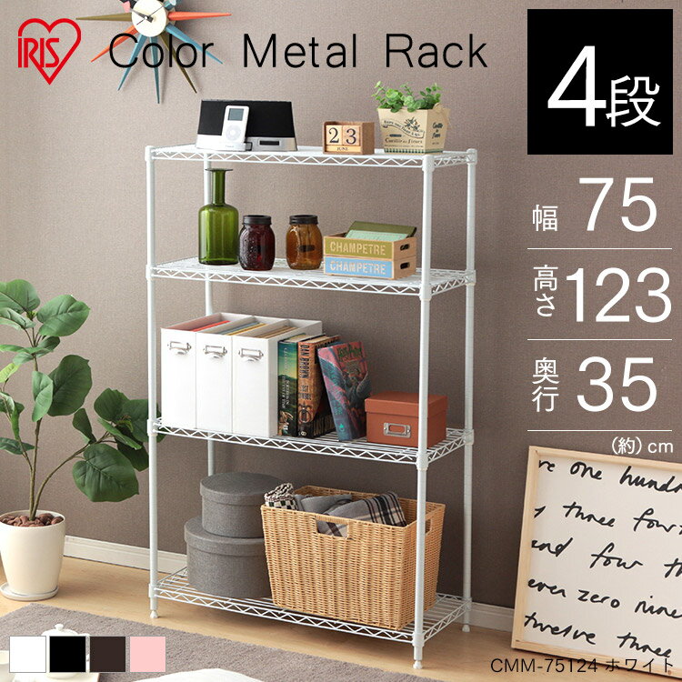 スチールラック 幅75 奥行35 4段 ホワイト メタルラックスチールシェルフ メタルシェルフ ラック シェルフ アイリスオーヤマ カラーメタルラック CMM-75124 ラック スチール ハンガーラック 棚 収納棚 収納ラック 送料無料 アイリスオーヤマ