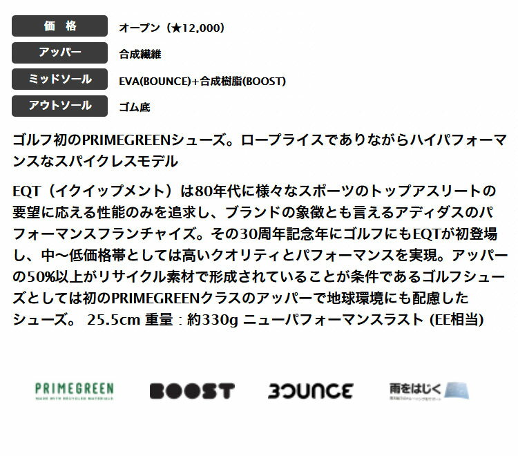 2021年モデル adidas アディダス ゴルフシューズ KZK61 EQT スパイクレス[EE相当/靴ひもタイプ] (メンズ)