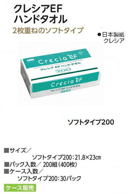 日本製紙クレシアEFハンドタオルソフト スリムタイプ / 37005200組×30袋セット/ケース販売 業務用 高品質な紙パックリサイクルパルプ配合 サイズ・重量高さ80mm×幅220mm×奥行120mm 重量460g○手洗い、処置、院内感染防止に。
