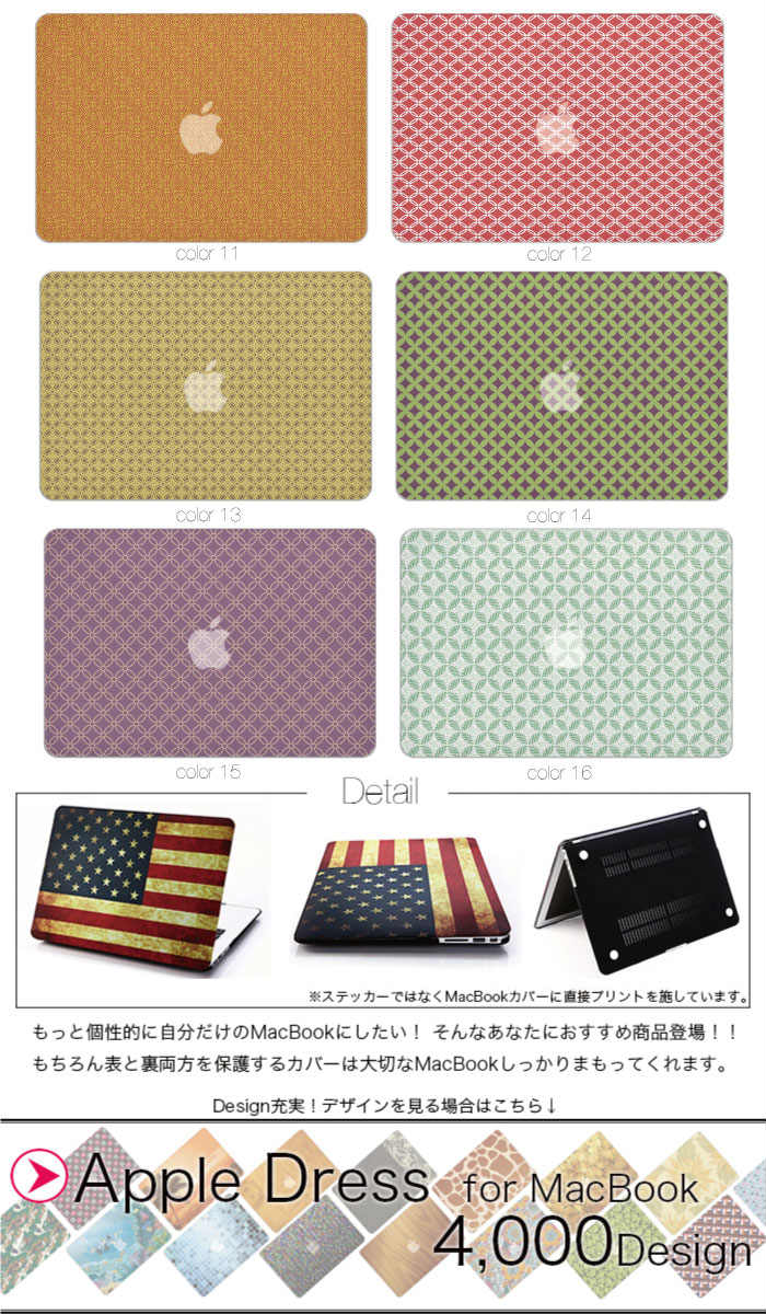 【 MacBook Pro & Air 】【メール便不可】 デザイン シェルカバー シェルケース macbook pro 13 ケース air 11 13 retina display マックブック 和柄 日本伝統 着物 JAPAN 青海波立涌 亀甲 籠目 菱 縞 点 鱗 市松 唐花文 花鳥文 狩猟文 華文 向い鶴菱 七宝 双鶴 吉祥文