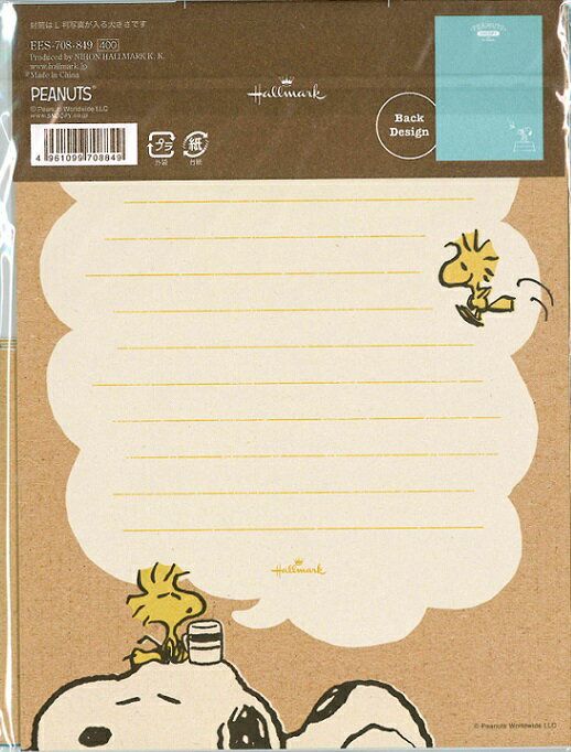 【メール便OK】ホールマーク スヌーピーレターセット EES-708-849【SNOOPY】ブルーリラックス/かわいいレターセット 台紙サイズ 186×138mm レターパッド 1柄 10枚入 封筒(L版写真が入るサイズです) 1柄 5枚 商品価格:432円 レビュー件数:1件 レビュー平均:5(5点満点) 楽天で購入 トップページへ